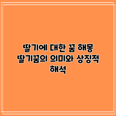이 글에서는 딸기의 상징과 꿈풀이를 다양한 상황별로 자세히 살펴보고, 꿈을 통해 얻을 수 있는 메시지를 탐구합니다. 딸기 꿈은 단순히 과일에 관한 이야기가 아니라, 꿈꾸는 사람의 삶과 감정을 탐색하는 데 중요한 열쇠가 될 수 있습니다.