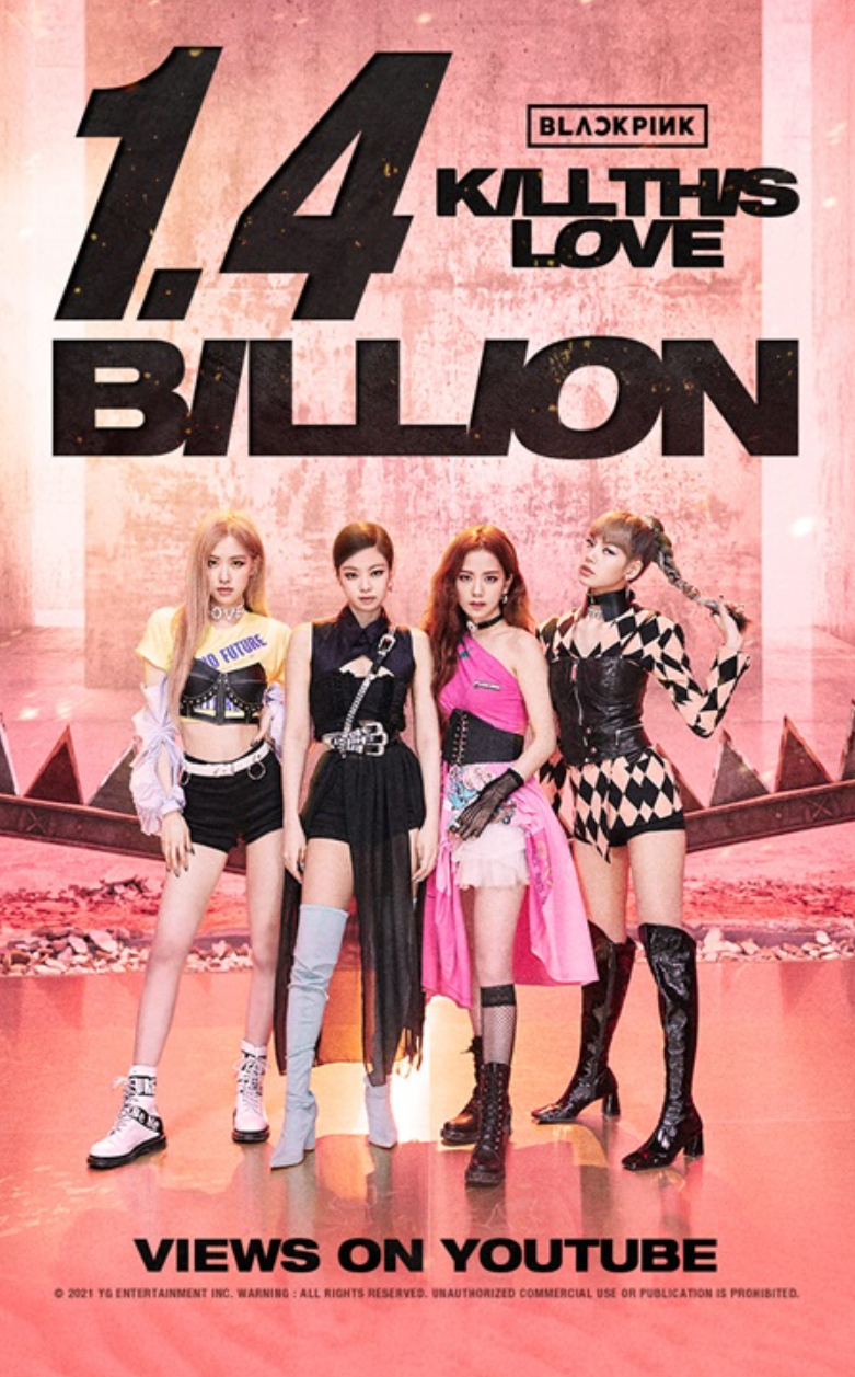 블랙핑크의 'Kill This Love' 뮤직비디오는 유튜브 조회수 14억뷰를 돌파했다. 9월 26일 소속사 YG엔터테인먼트의 공식 발표에 의하면 '킬 디스 러브' 뮤직비디오는 전날 오후 5시 58분 유튜브 조회수 14억뷰를 돌파했다고 한다.