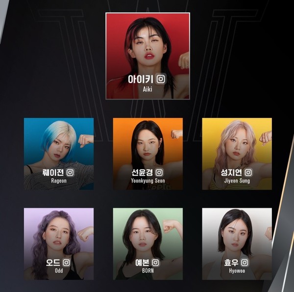 Mnet Street Woman Fighter에 아이키, 예본, 선윤경, 오드, 효우, 뤠이전, 성지연 등 7명의 멤버가 출전해서 2위를 차지했습니다.