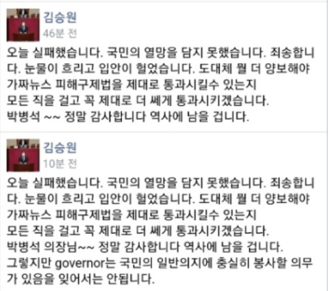 들어가기에 문맥 상 맞지 않다 이거죠. 김승원 의원 글 읽어보면 투덜대는 그런 늬앙스잖아요? 거기다가 'Government Serve General Good'이란 말도 뭔가 급하게 만든 것 같고, 문법에도 안맞는 것 같은 느낌이네요.