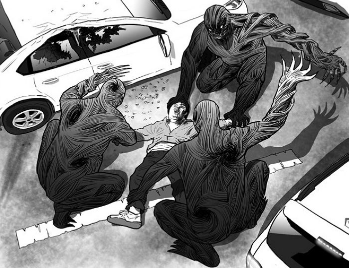 그리고 약속한 시간이 되면 정말로 괴물이 나타나 사람들을 잔인하게 죽여버리죠. 드라마에서 보여지는 고지와 시효는 일종의 자연재해라고 해석할 수 있습니다. 죄를 저지르건 저지르지 않았건 나이가 많건 적건 아무 규칙 없이 누구에게나 급작스럽게 발생하죠. 그래서 고지에 어떠한 의미를 부여하려는 시도는 전부 다 실패하게 됩니다.
